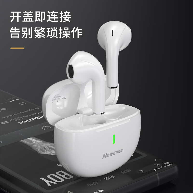纽曼D8真无线蓝牙耳机耳机蓝牙5.1入耳式长续航音乐低延迟通用苹果小米华为手机白色
