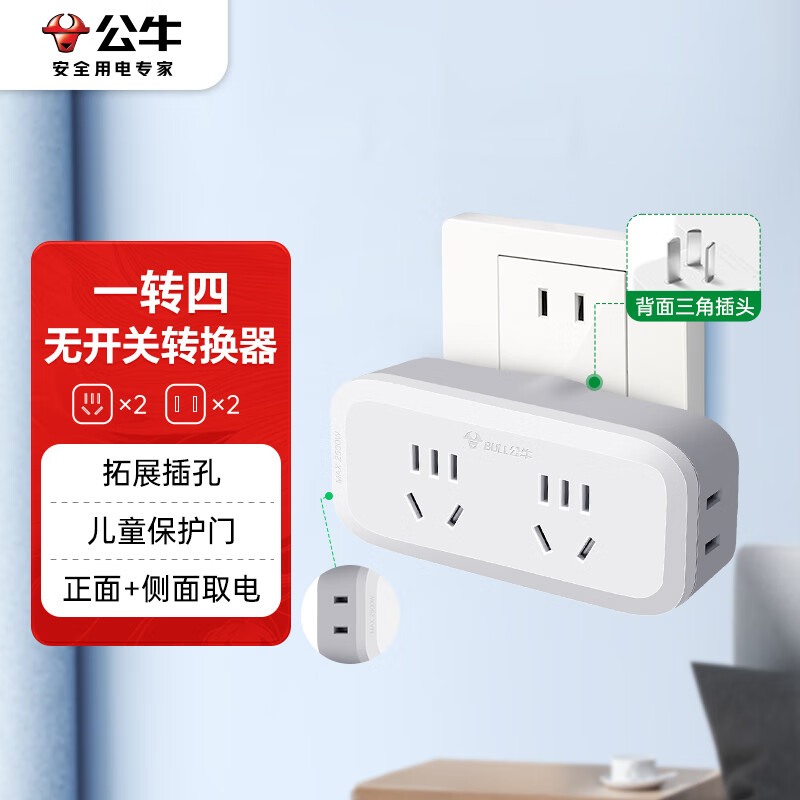 公牛(BULL)一转四插座/转换插头/电源转换器 适用于卧室、厨房 4位无线转换插座 GN-904