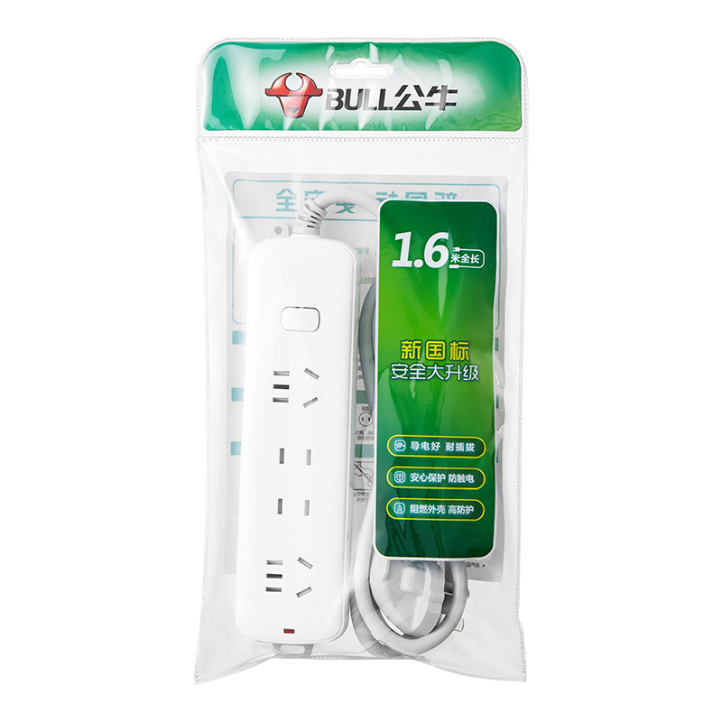 公牛新国标插座 全白款 4孔位 S1220 1.6m