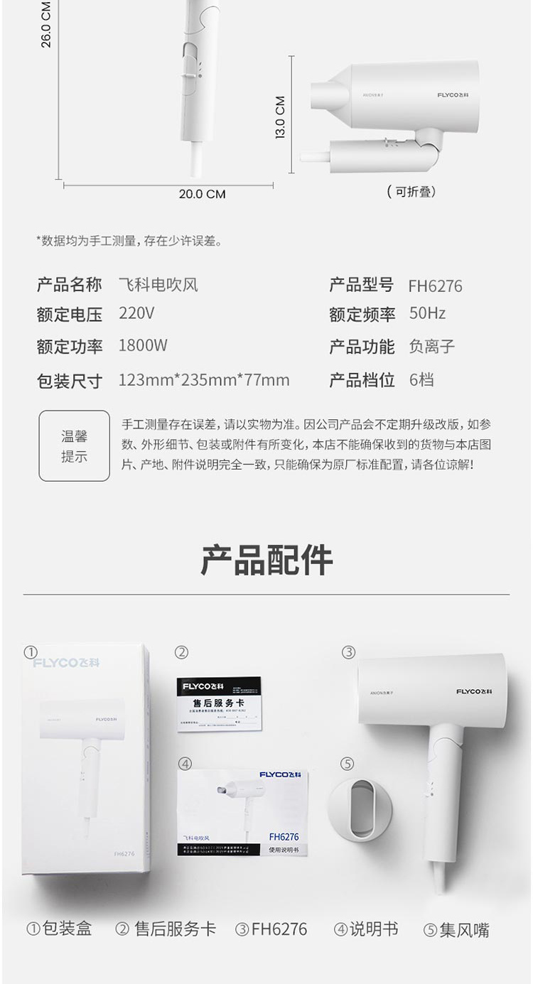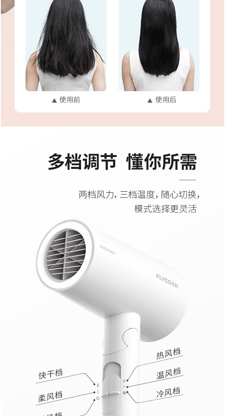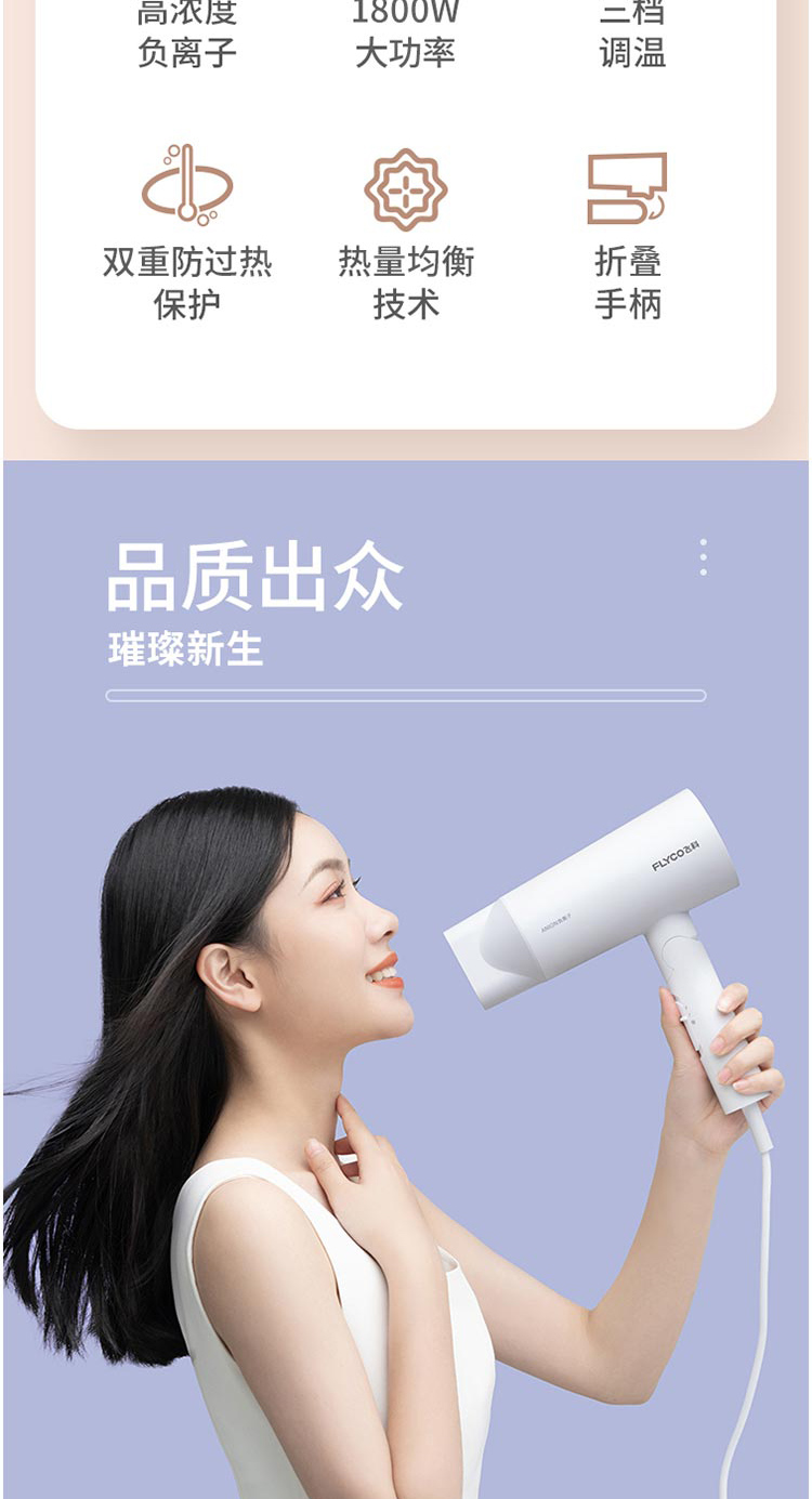 超人(SID)吹风机折叠式电吹风机三档调温风筒可折叠易携带学生吹发机吹干机干发器 RD1632