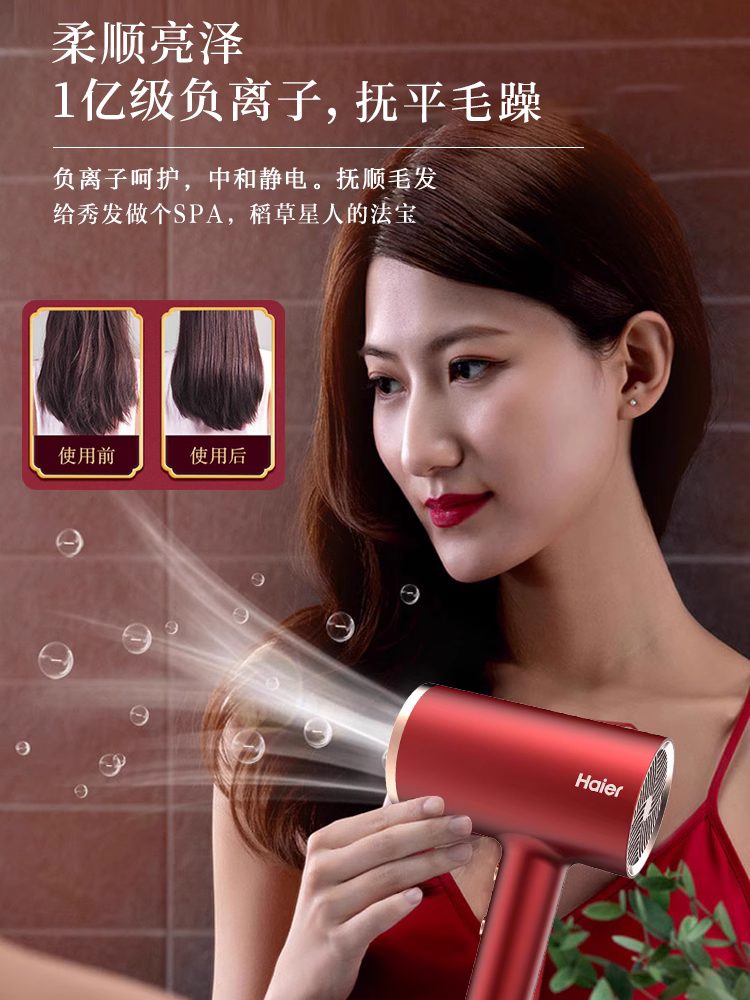海尔电吹风机冷家用恒温大功率速干造型负离子护发吹风筒机 1亿负离子