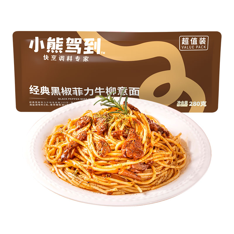 小熊驾到经典黑椒菲力牛柳意面280g*3袋装(新疆/西藏/内蒙古/甘肃/宁夏/青海/海南不发货)