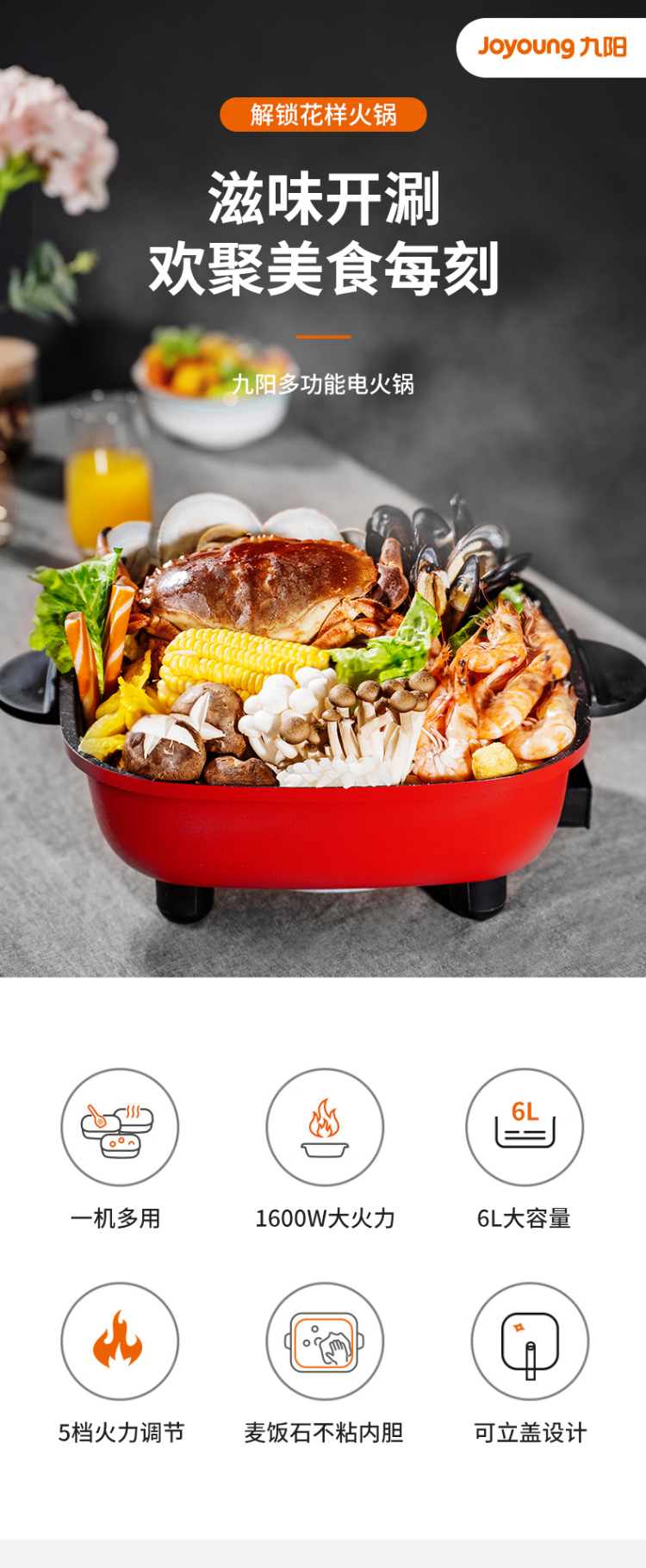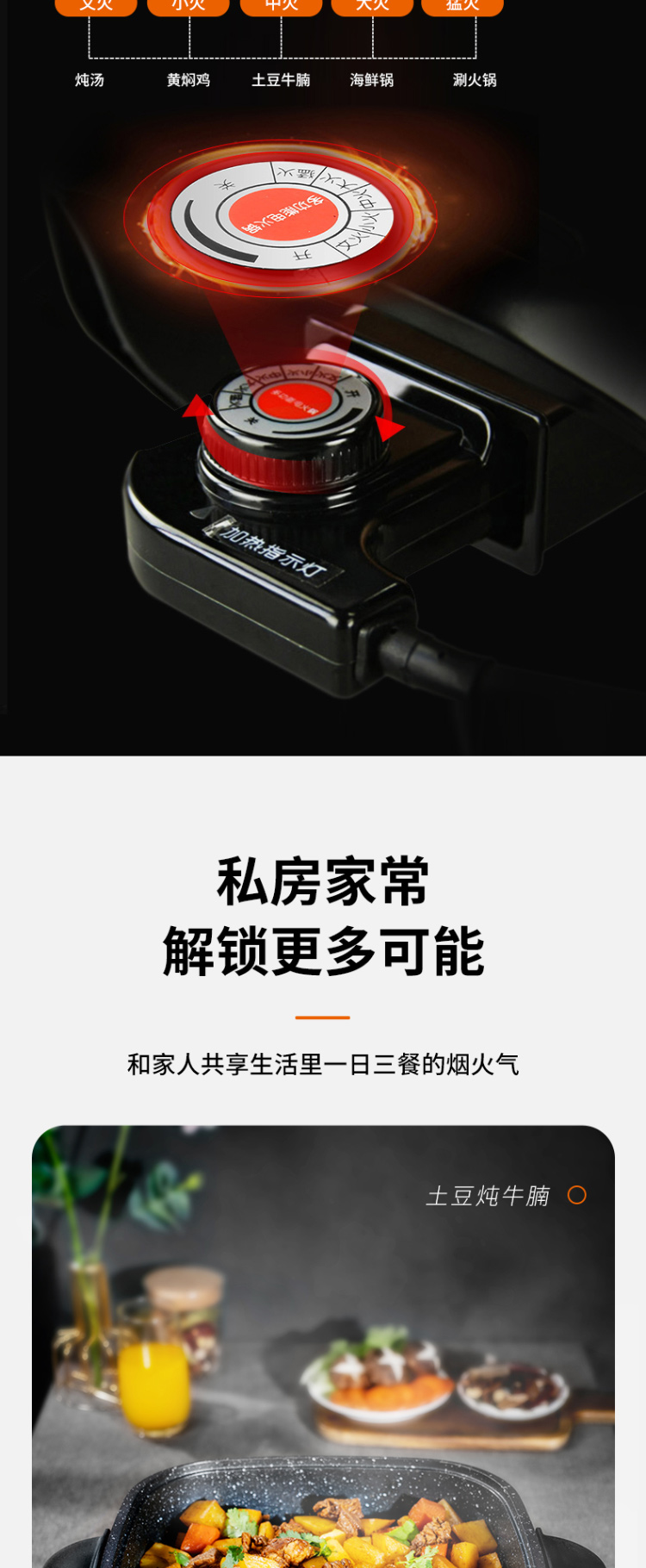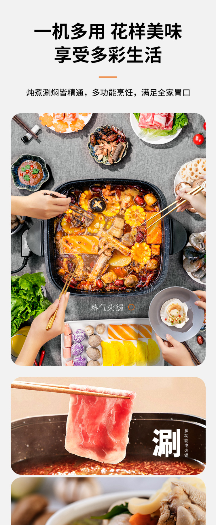 分体式电火锅多用途锅家用多功能电热锅电煮锅无极旋钮操控4L大容量网红不粘锅1300W大功率H27YK37, 新疆、西藏、甘肃、宁夏、青海、内蒙古、港澳台等偏远地区不发货。