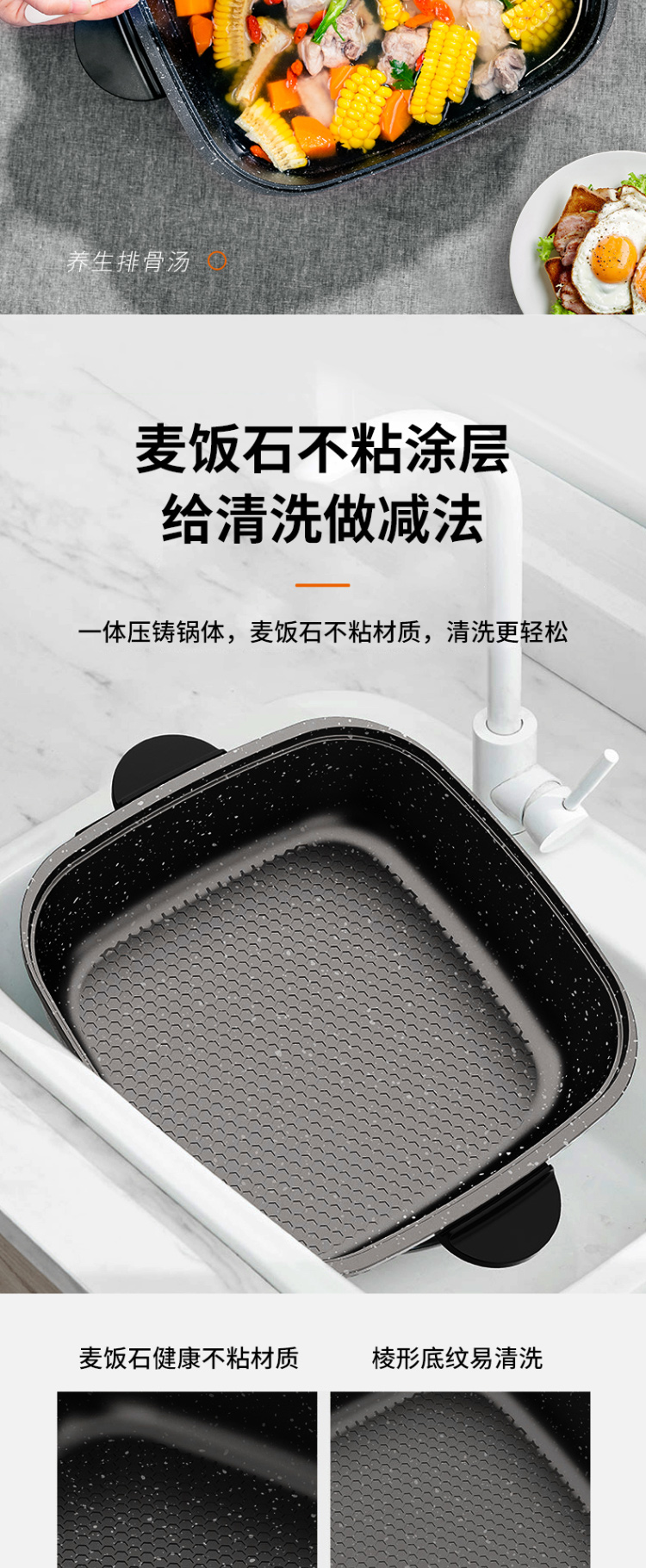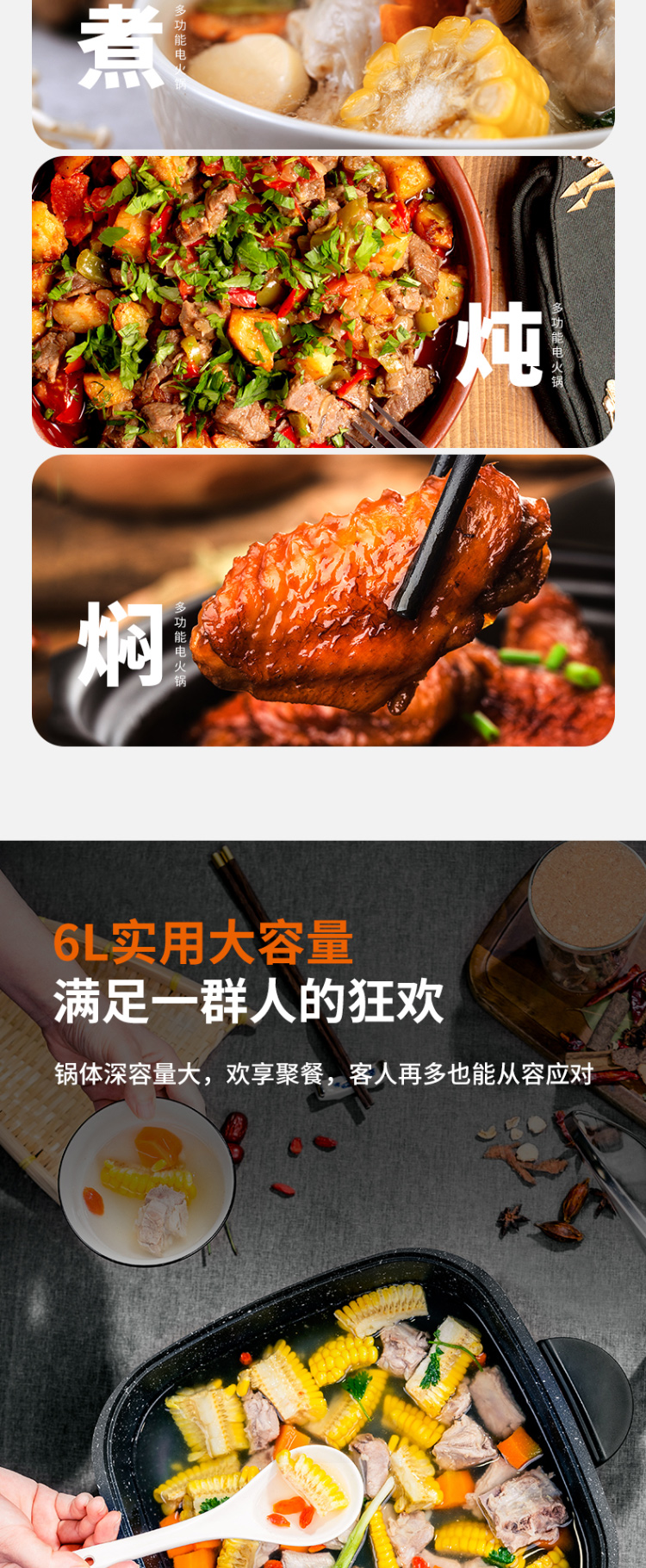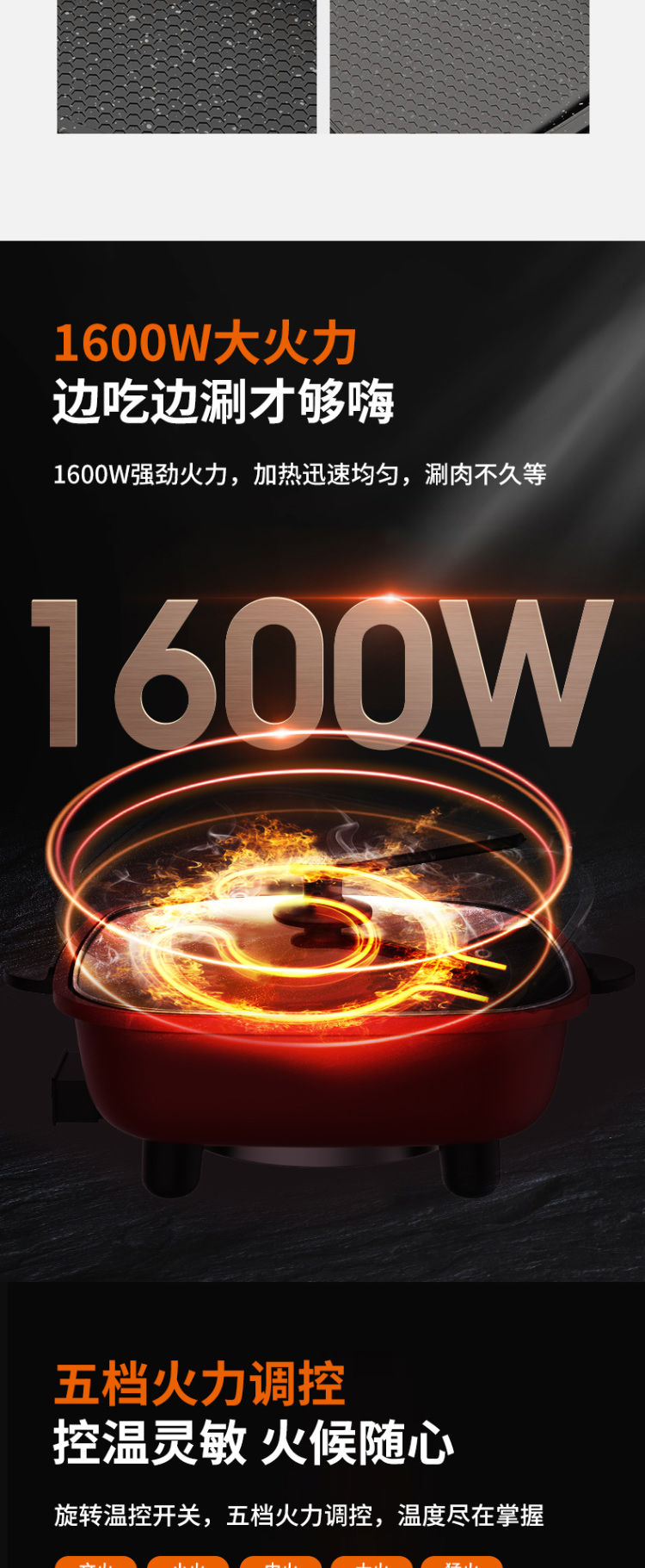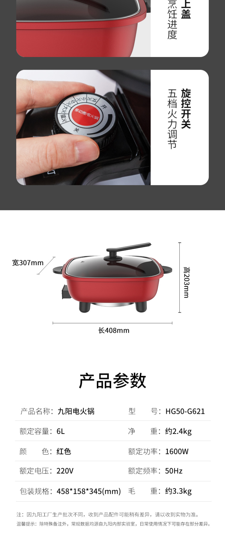 分体式电火锅多用途锅家用多功能电热锅电煮锅无极旋钮操控4L大容量网红不粘锅1300W大功率H27YK37, 新疆、西藏、甘肃、宁夏、青海、内蒙古、港澳台等偏远地区不发货。